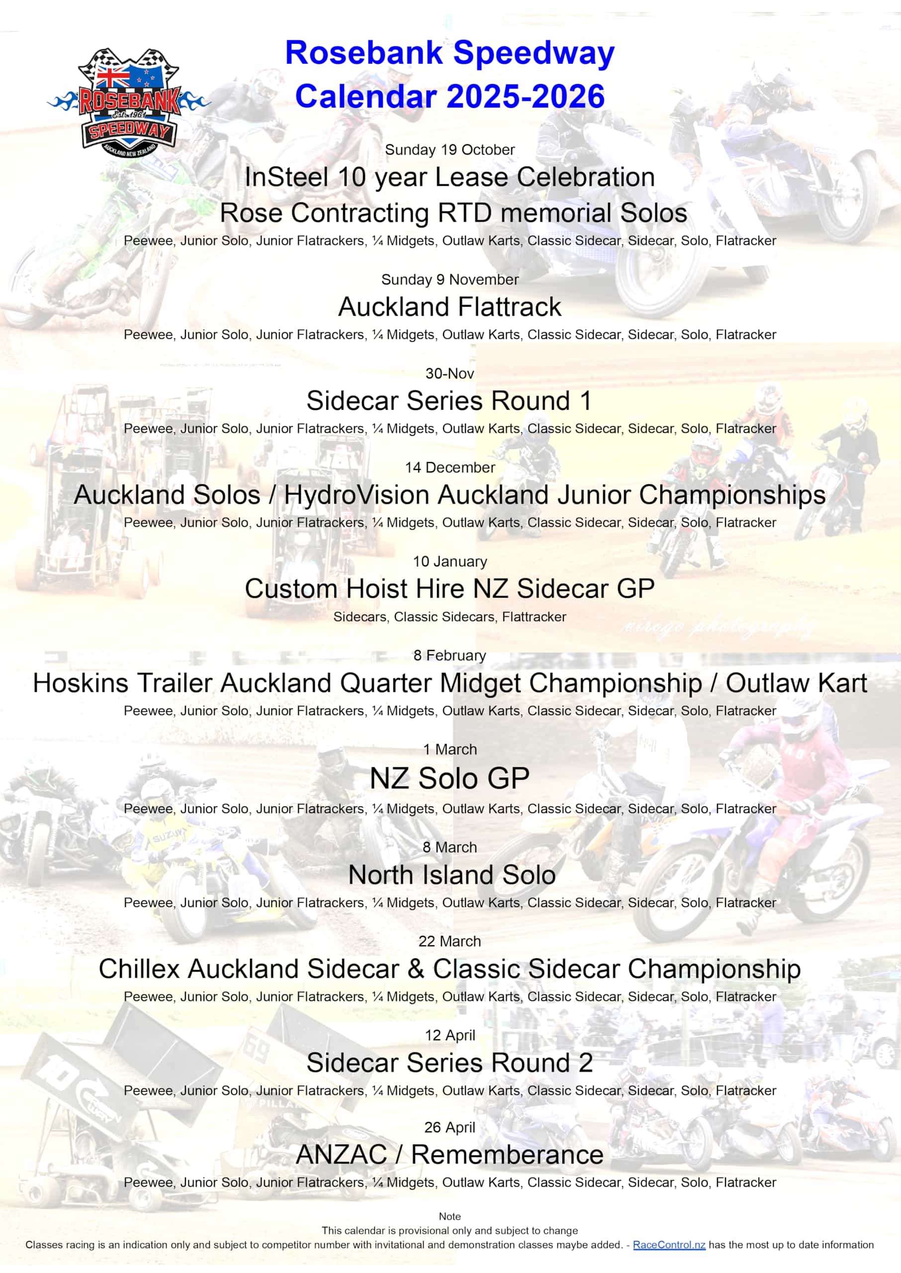 Classes racing is an indication only and subject to competitor number with invitational and demonstration classes maybe added.